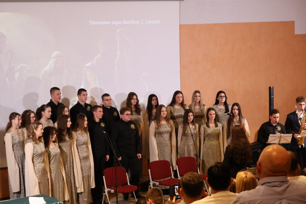 Večer je započela zvucima školskog tamburaškog sastava pod vodstvom prof. Zrinke Andrić, a program su vodili učenici Nora Giesler i Ivano Ivešić. Kratkim nagovorom u dublji smisao Božića uveo nas je pater Boris Jozić. Uslijedio je dramski igrokaz „Čekaonica“ u izvedbi dramske skupine pod vodstvom školske knjižničarke Klare Krnjaković, koji nas je uz dozu humora podsjetio na prave vrijednosti blagdana, a potom i glazbeni program božićnih pjesama u izvedbi školskog zbora i glazbenika pod vodstvom prof. Zrinke Andrić. Prigodnim riječima obratio nam se i ravnatelj škole, Alen Šimičić.